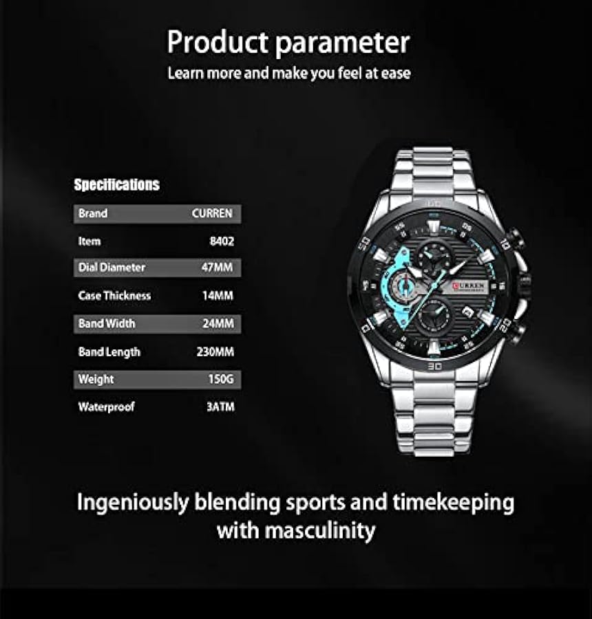 Feature:Auto Date,Water Resistant 3ATM,Chronograph