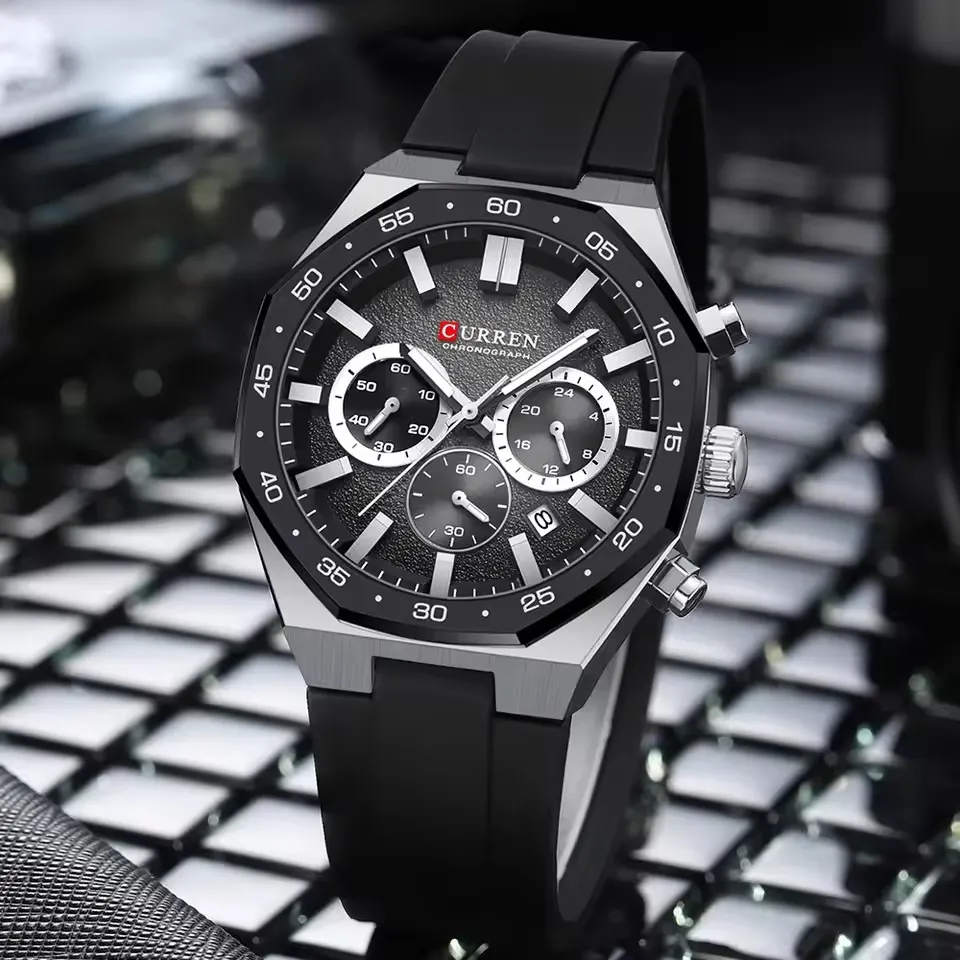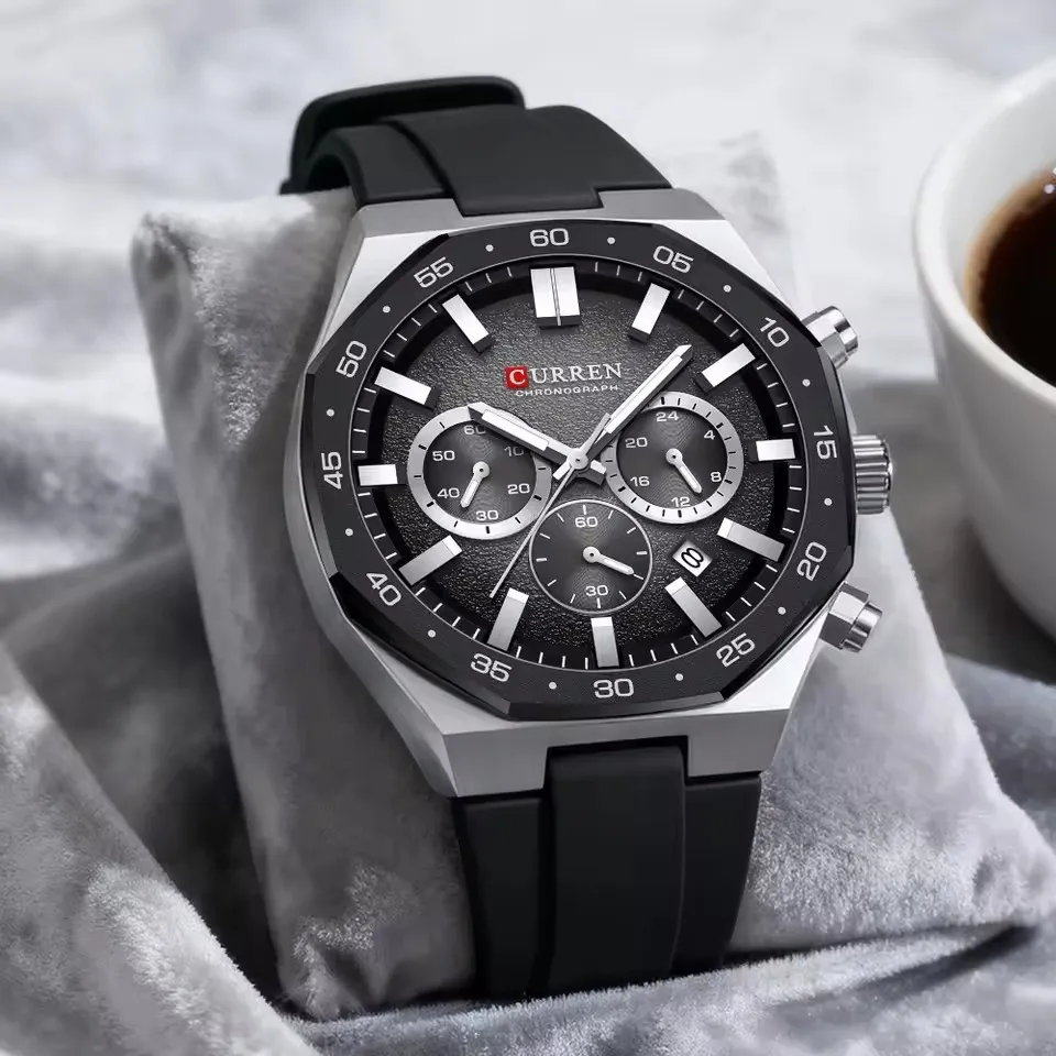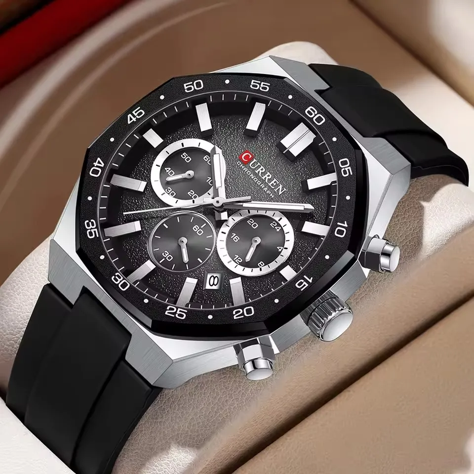 Curren 8489 Watch For Men Silicon Belt-Black