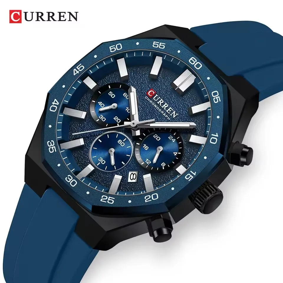 Curren 8489 Watch For Men Silicon Belt-Blue
