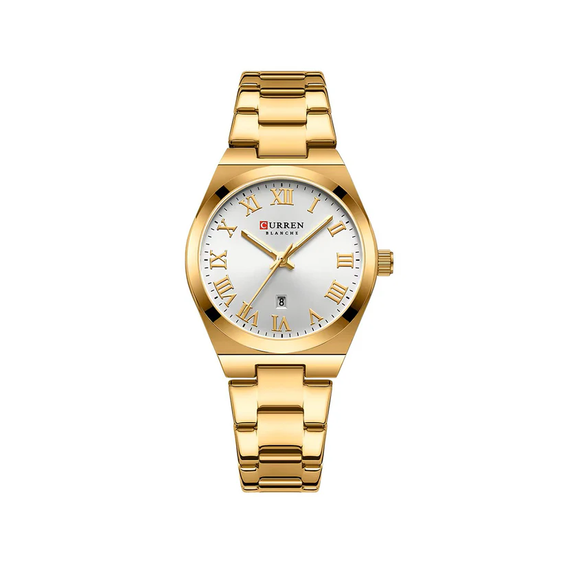 CURREN 9095 Elegant Watch Watch For Women – Golden White