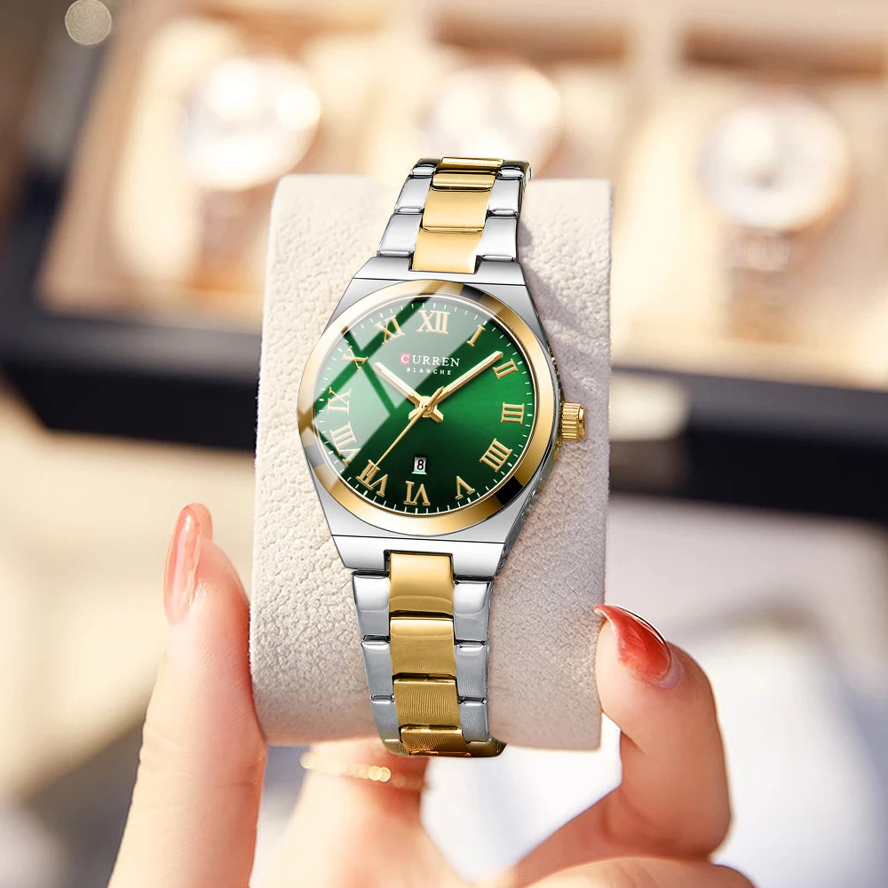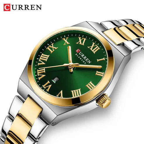 CURREN 9095 Elegant Watch Watch For Women – Silver Golden Green