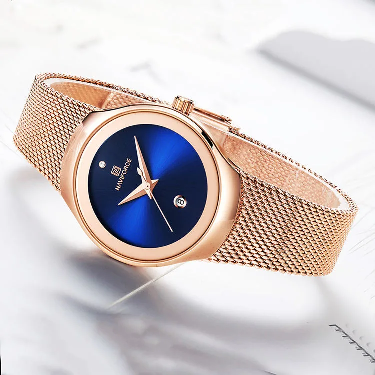 Naviforce 5004 Watch For Women-Rose Gold Blue