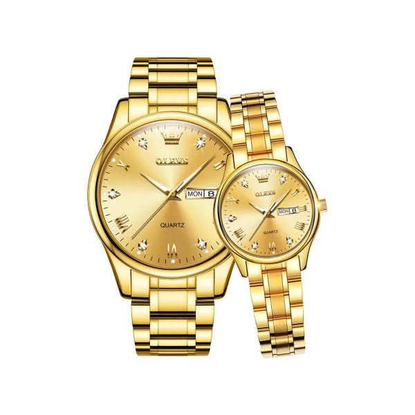 Olevs 5563 Couple Wrist Watch-Golden