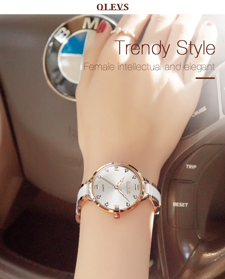 OLEVS 5872 Orginal Ceramic Watches For Woman-White