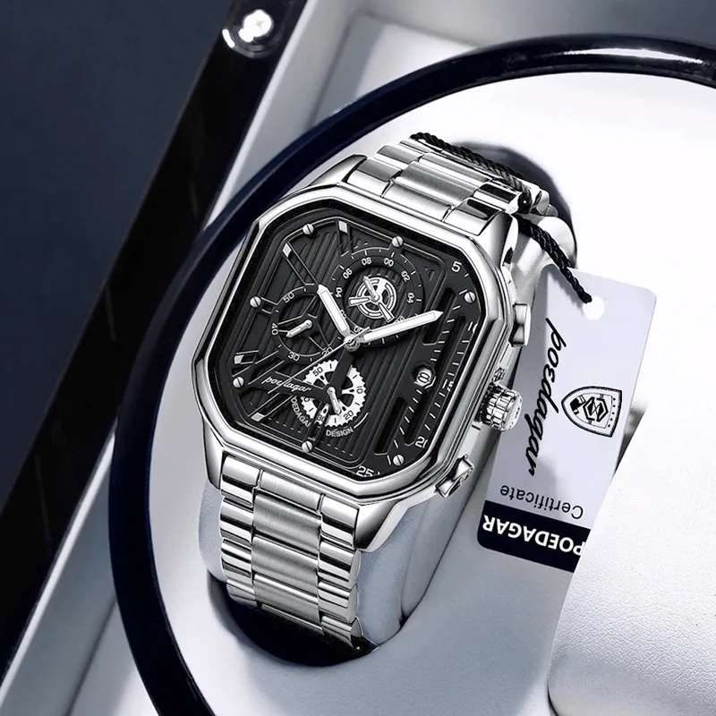 Be the first to review “Poedagar 628 Watches for Men-Silver Black”