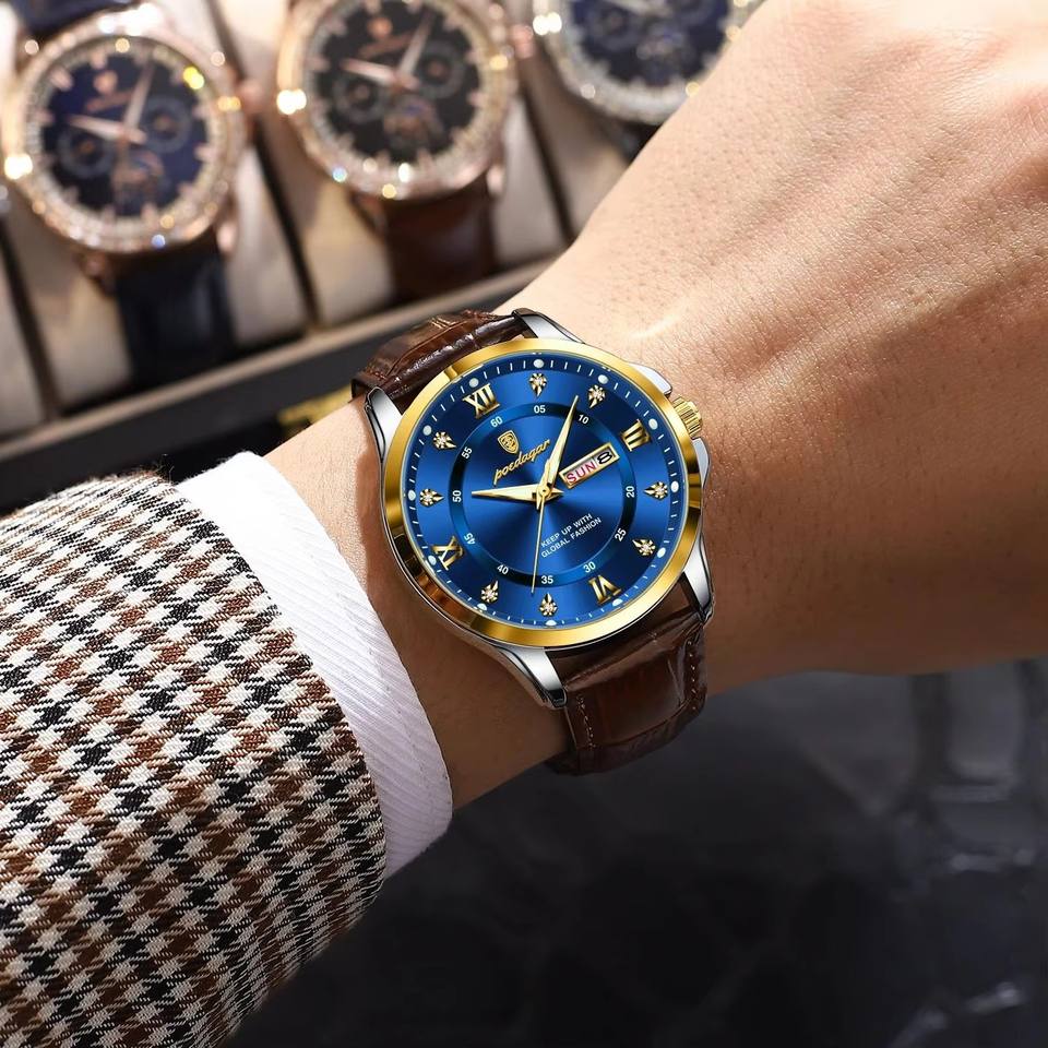Tags: Affordable Premium Watch, Authentic Poedagar Quality., Bold and Sharp Look, Classic Analog Timepiece, Confident Business Accessory, Deep Navy Sunburst Dial, Durable Genuine Leather, Earthy Tones and Blue Accents, Elite Gentleman’s Watch, Everyday Luxury Essential, Heritage Inspired Timepiece, High-End Craftsmanship, Luxury Wristwear for Men, Masculine Style Statement, Men's Classic Brown Blue, Modern Gentleman Style, poedagar 855, Precision and Style, Premium Brown Leather Strap, Refined Casual Look, Sharp Corporate Wear, Signature Wristwear., Sleek Blue Face, Sophisticated Nautical Aesthetic, Striking Formal Design, Stylish Gift for Him, Timeless Elegant Design, Trendsetting Men's Fashion, Versatile Professional Watch, Vintage Meets Modern